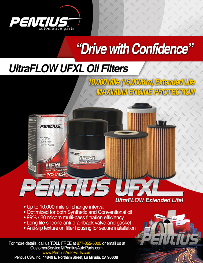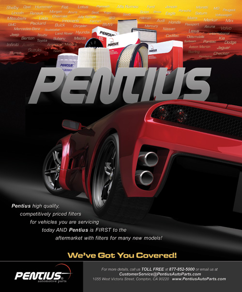 Recent trade magazine advertisements by Pentius Automotive Parts